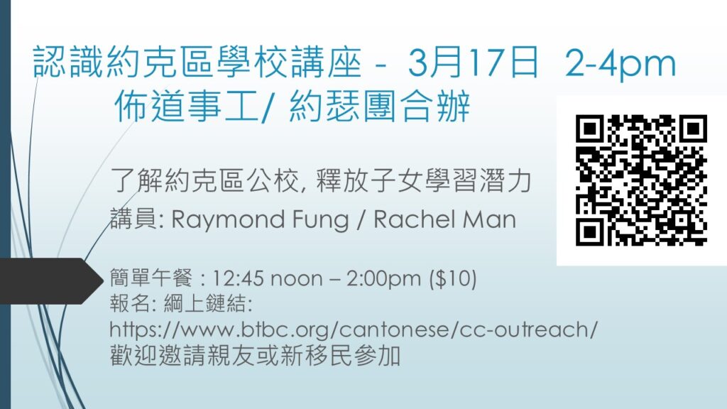 佈道事工「認識約克區學校」講座網上登記: 請用此鏈接