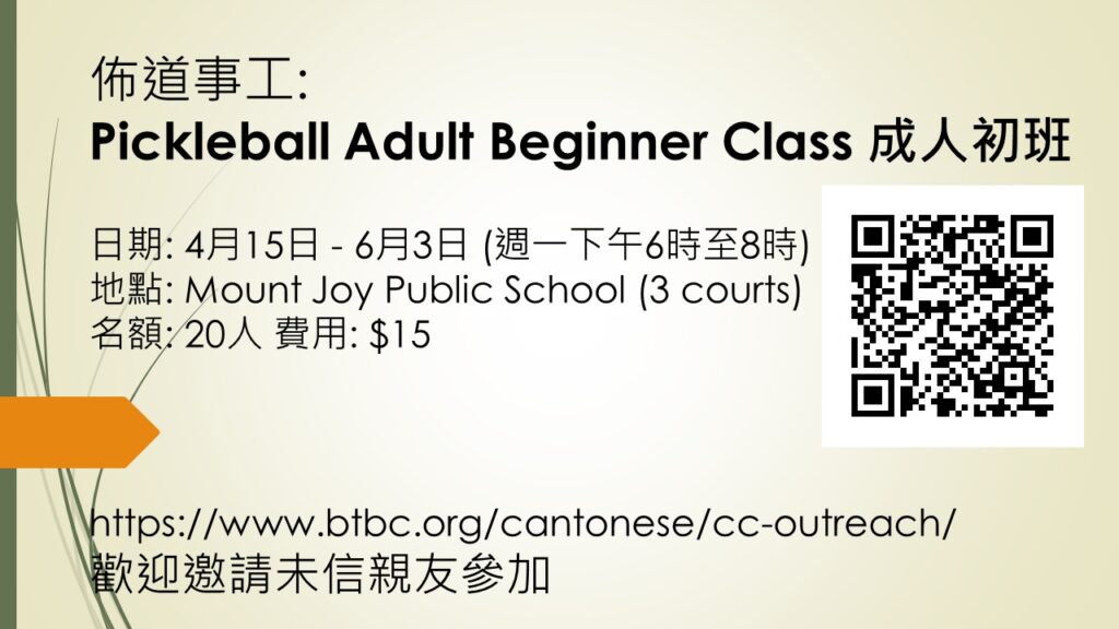 Pickleball Adult Beginner Class 網上登記: 請用此鏈接.
