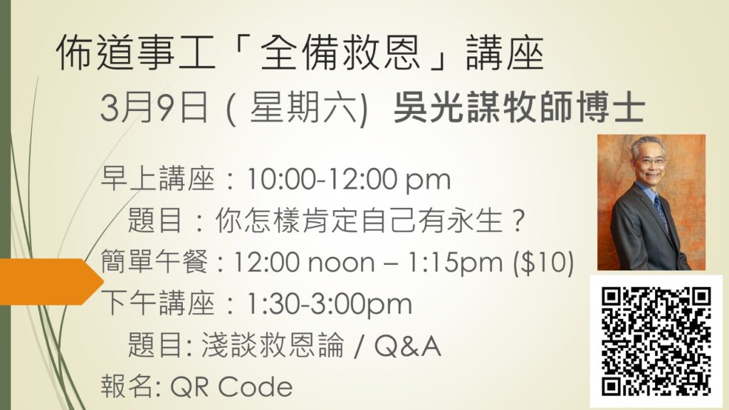 佈道事工「全備救恩」講座網上登記: 請用此鏈接